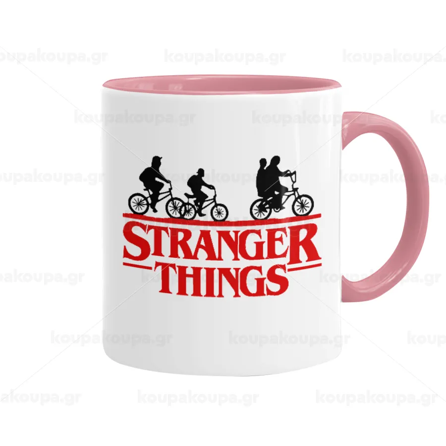 Stranger Things red, Κούπα χρωματιστή ροζ, κεραμική, 330ml