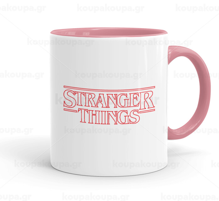 Stranger Things Logo, Κούπα χρωματιστή ροζ, κεραμική, 330ml