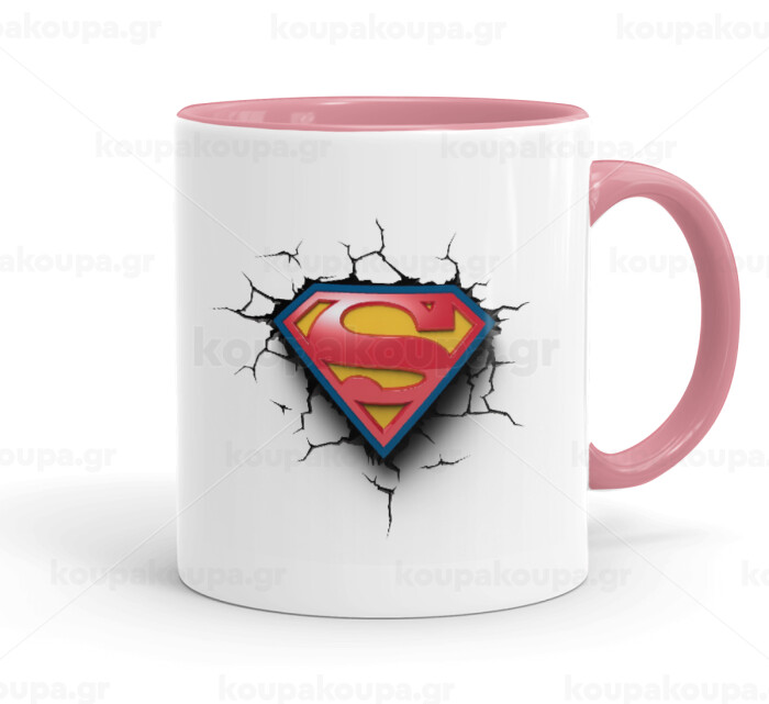 Superman cracked, Κούπα χρωματιστή ροζ, κεραμική, 330ml