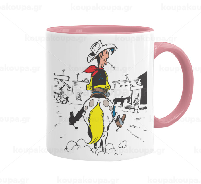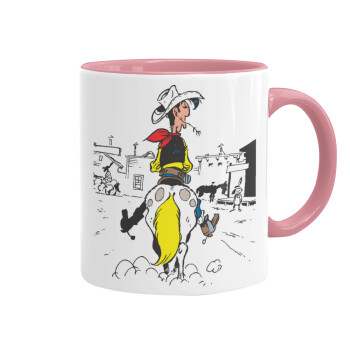 Λούκυ Λουκ comic, Κούπα χρωματιστή ροζ, κεραμική, 330ml