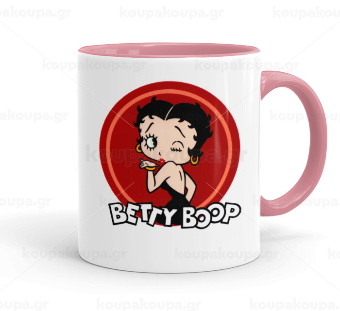 Betty Boop kiss, Κούπα χρωματιστή ροζ, κεραμική, 330ml