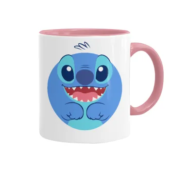 Lilo & Stitch blue, Κούπα χρωματιστή ροζ, κεραμική, 330ml
