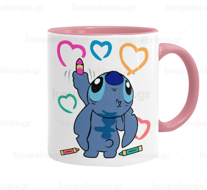 Lilo & Stitch painting, Κούπα χρωματιστή ροζ, κεραμική, 330ml