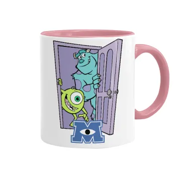 Monster inc, Κούπα χρωματιστή ροζ, κεραμική, 330ml