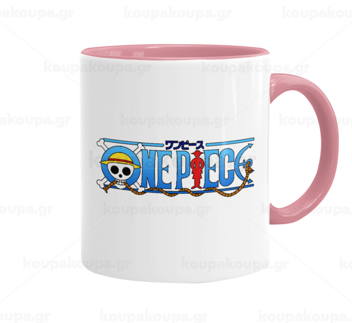 Onepiece logo, Κούπα χρωματιστή ροζ, κεραμική, 330ml