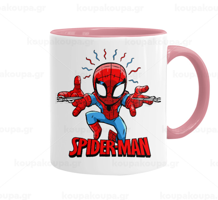 Spiderman flying, Κούπα χρωματιστή ροζ, κεραμική, 330ml