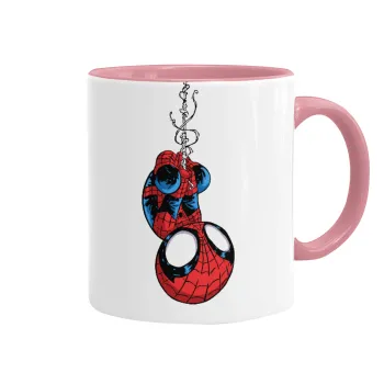 Spiderman upside down, Κούπα χρωματιστή ροζ, κεραμική, 330ml