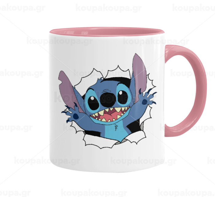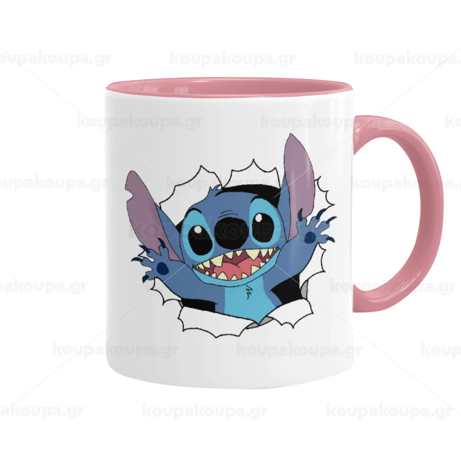 Stitch hello!!!, Κούπα χρωματιστή ροζ, κεραμική, 330ml