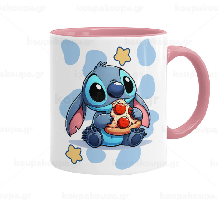 Stitch Pizza, Κούπα χρωματιστή ροζ, κεραμική, 330ml