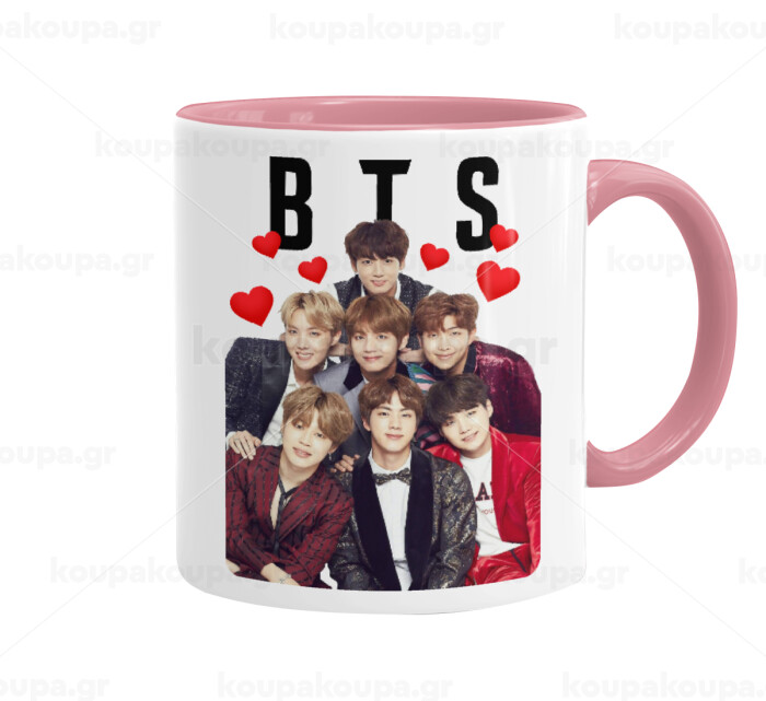 BTS hearts, Κούπα χρωματιστή ροζ, κεραμική, 330ml