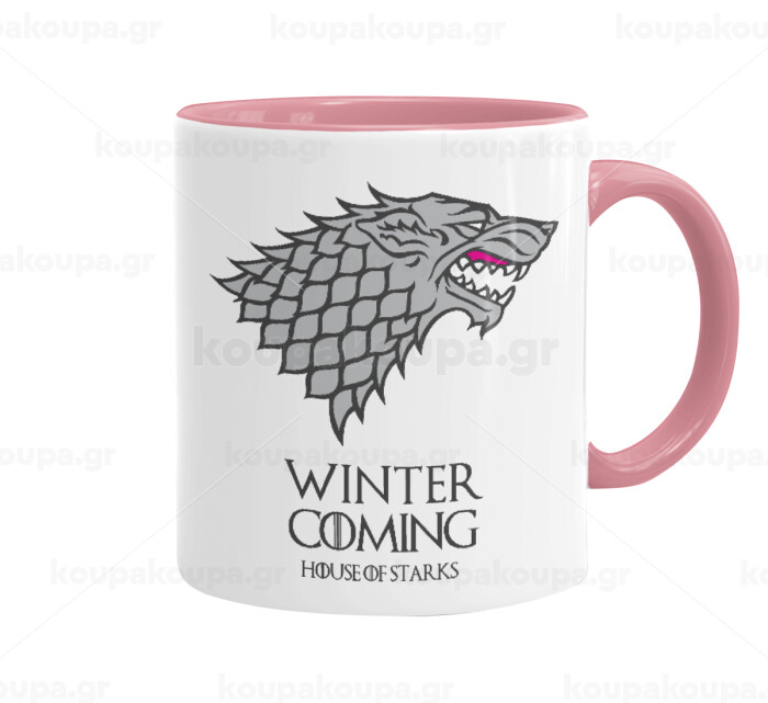 GOT House of Starks, winter coming, Κούπα χρωματιστή ροζ, κεραμική, 330ml
