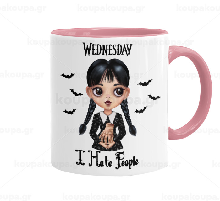 Wednesday Adams, i hate people, Κούπα χρωματιστή ροζ, κεραμική, 330ml