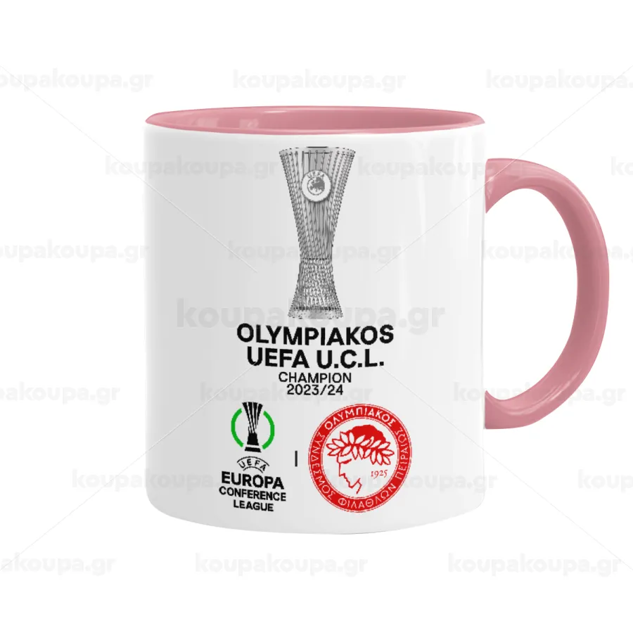 Ολυμπιακός νικητής UEFA Europa Conference League Champion 2023/24, Κούπα χρωματιστή ροζ, κεραμική, 330ml