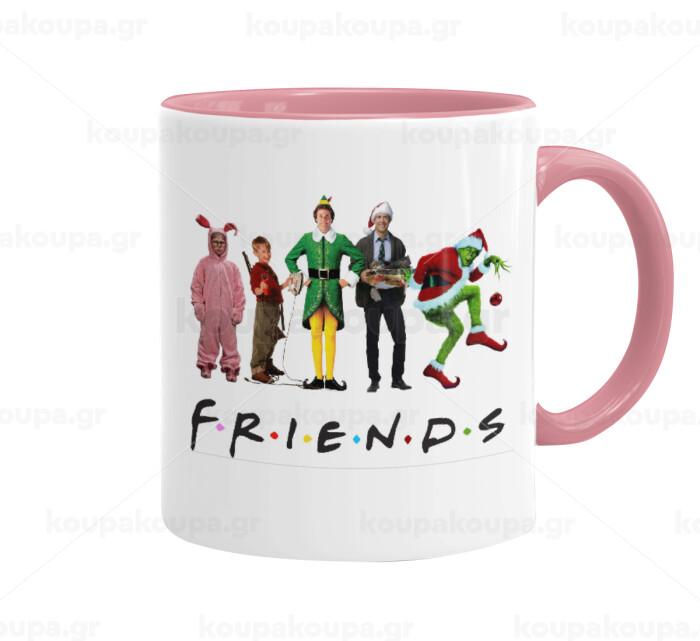 Christmas FRIENDS, Κούπα χρωματιστή ροζ, κεραμική, 330ml