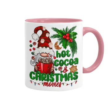 Hot cocoa and Christmas movies, Κούπα χρωματιστή ροζ, κεραμική, 330ml
