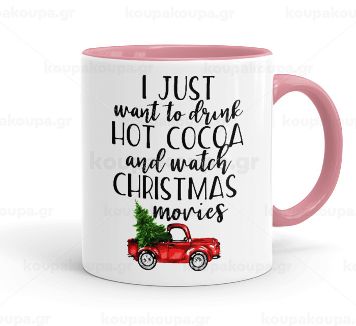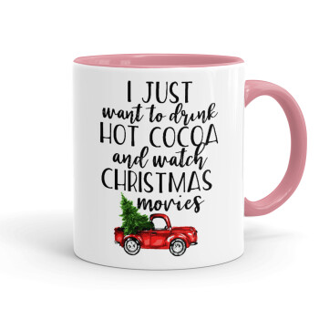 I just want to drink hot cocoa and watch christmas movies pickup car, Κούπα χρωματιστή ροζ, κεραμική, 330ml