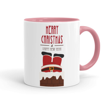 Merry christmas chimney, Κούπα χρωματιστή ροζ, κεραμική, 330ml