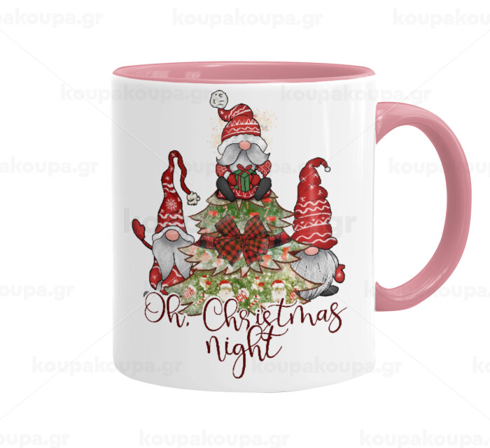 Oh Christmas Night, Κούπα χρωματιστή ροζ, κεραμική, 330ml