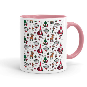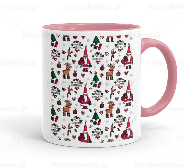 Santas, Deers & Trees, Κούπα χρωματιστή ροζ, κεραμική, 330ml