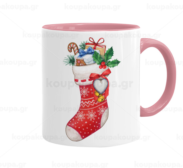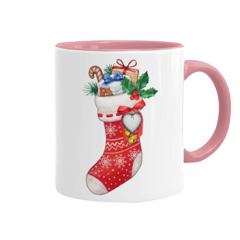Xmas boot, Κούπα χρωματιστή ροζ, κεραμική, 330ml