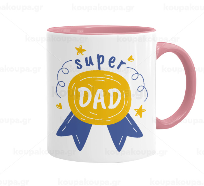 Μπαμπά είσαι για μετάλλιο, Κούπα χρωματιστή ροζ, κεραμική, 330ml