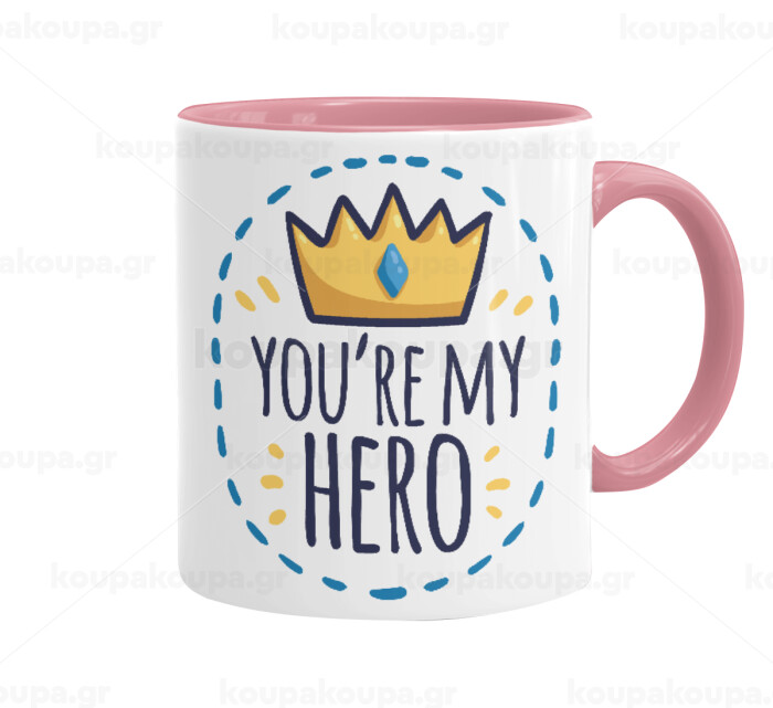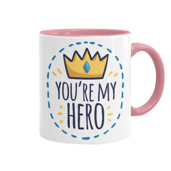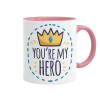 Dad, you are my hero!, Κούπα χρωματιστή ροζ, κεραμική, 330ml