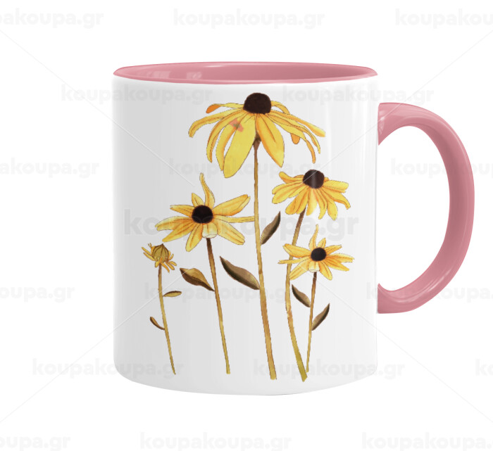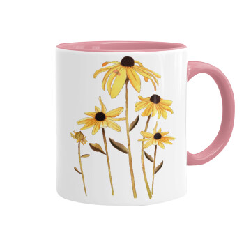 Daisies flower, Κούπα χρωματιστή ροζ, κεραμική, 330ml