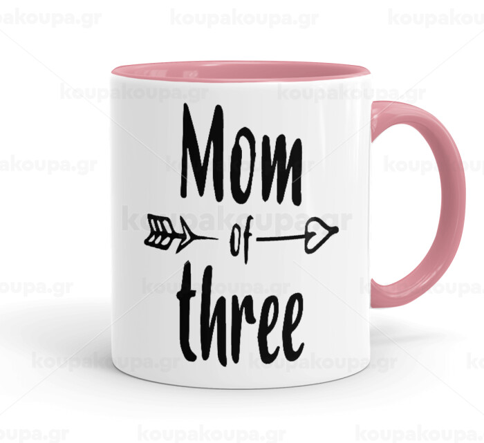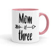 Mom of three, Κούπα χρωματιστή ροζ, κεραμική, 330ml