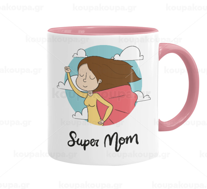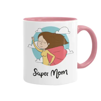 Super mom, Κούπα χρωματιστή ροζ, κεραμική, 330ml