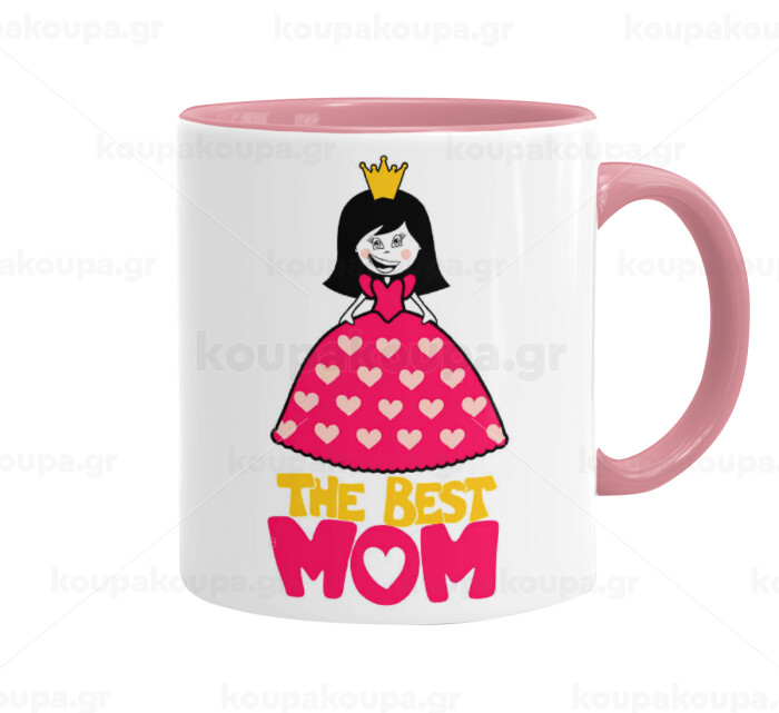 The Best Mom Queen, Κούπα χρωματιστή ροζ, κεραμική, 330ml