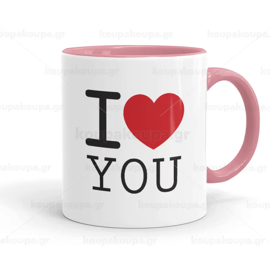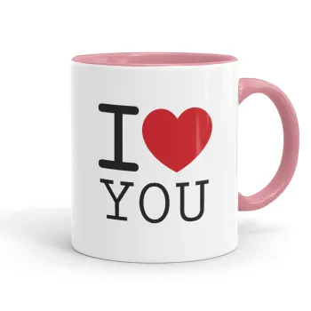 I Love you classic, Κούπα χρωματιστή ροζ, κεραμική, 330ml