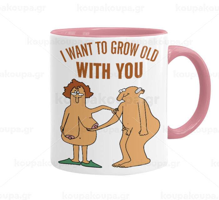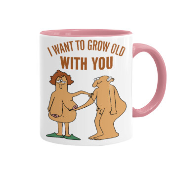 I want to grow old with you, Κούπα χρωματιστή ροζ, κεραμική, 330ml