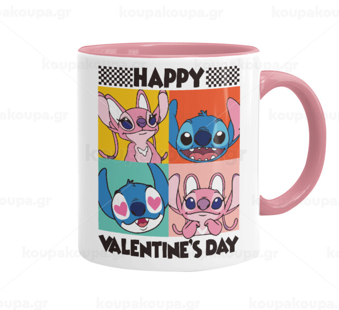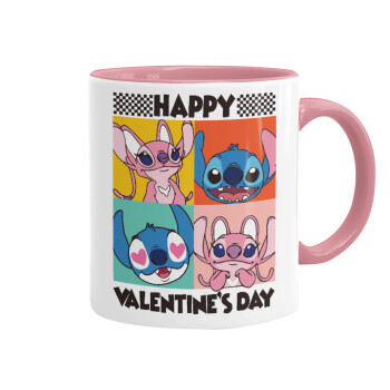 Lilo & Stitch Happy valentines day, Κούπα χρωματιστή ροζ, κεραμική, 330ml