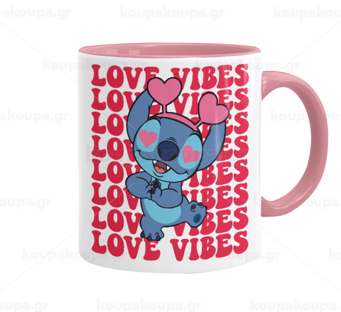 Lilo & Stitch Love vibes, Κούπα χρωματιστή ροζ, κεραμική, 330ml