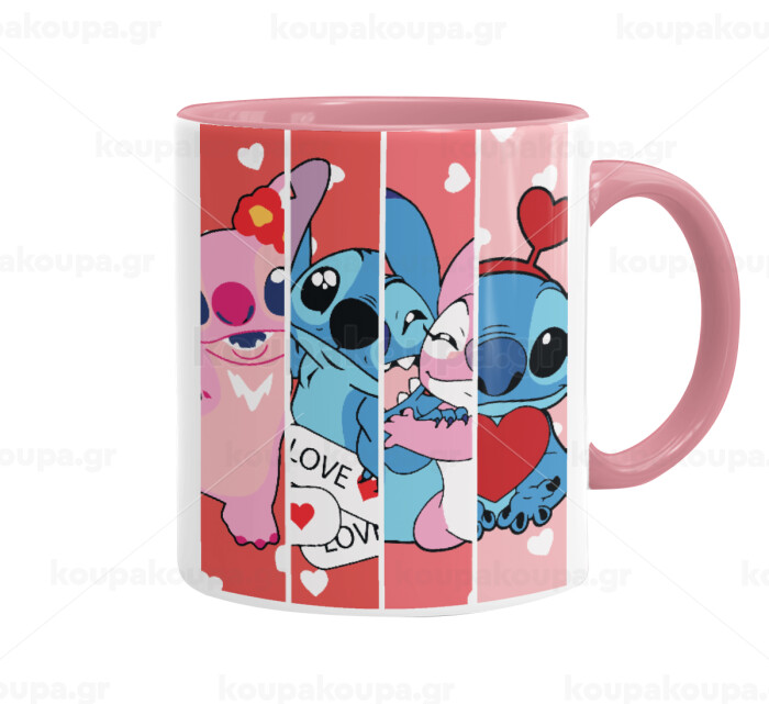 Lilo & Stitch Love, Κούπα χρωματιστή ροζ, κεραμική, 330ml
