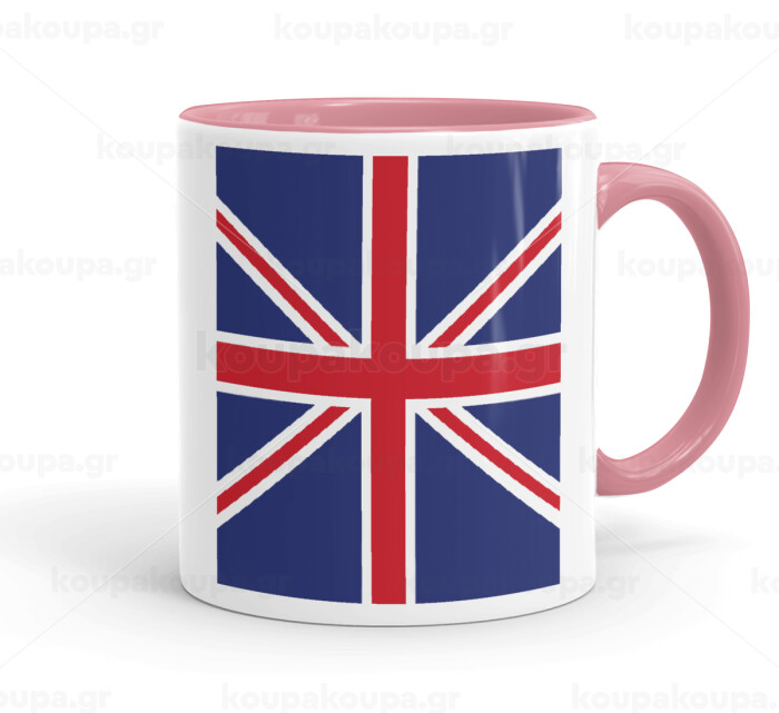 Σημαία Αγγλίας UK, Κούπα χρωματιστή ροζ, κεραμική, 330ml