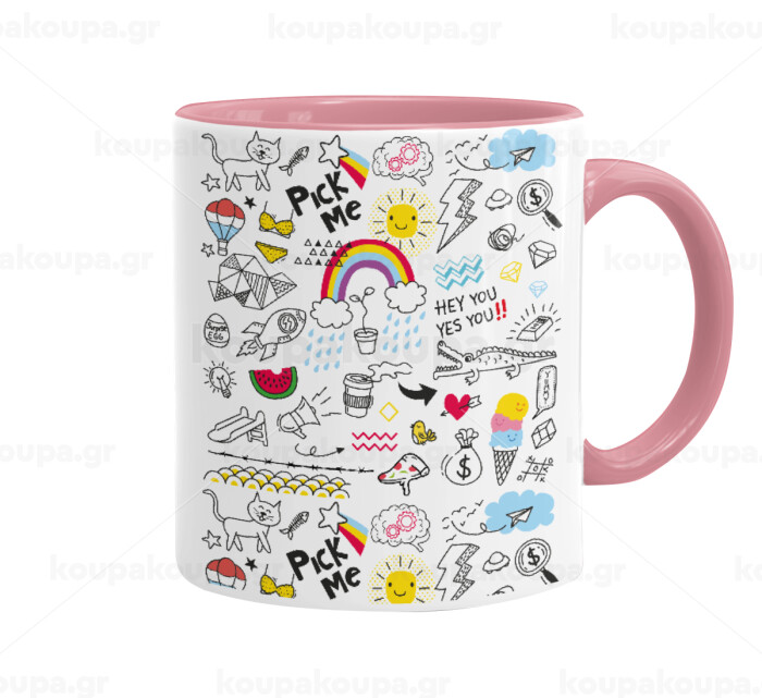 Doodle kids, Κούπα χρωματιστή ροζ, κεραμική, 330ml