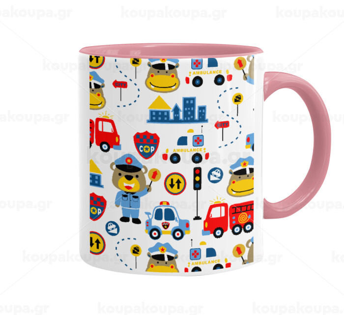 Rescue team cartoon, Κούπα χρωματιστή ροζ, κεραμική, 330ml