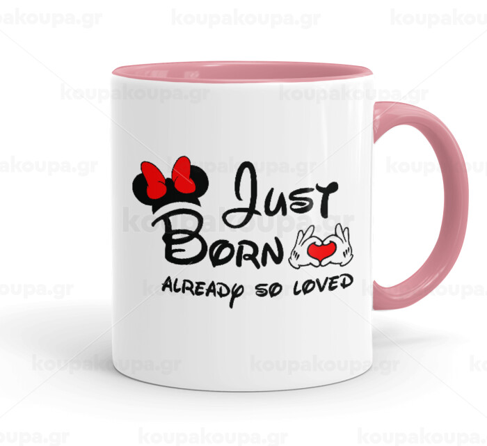 Just born already so loved, Κούπα χρωματιστή ροζ, κεραμική, 330ml