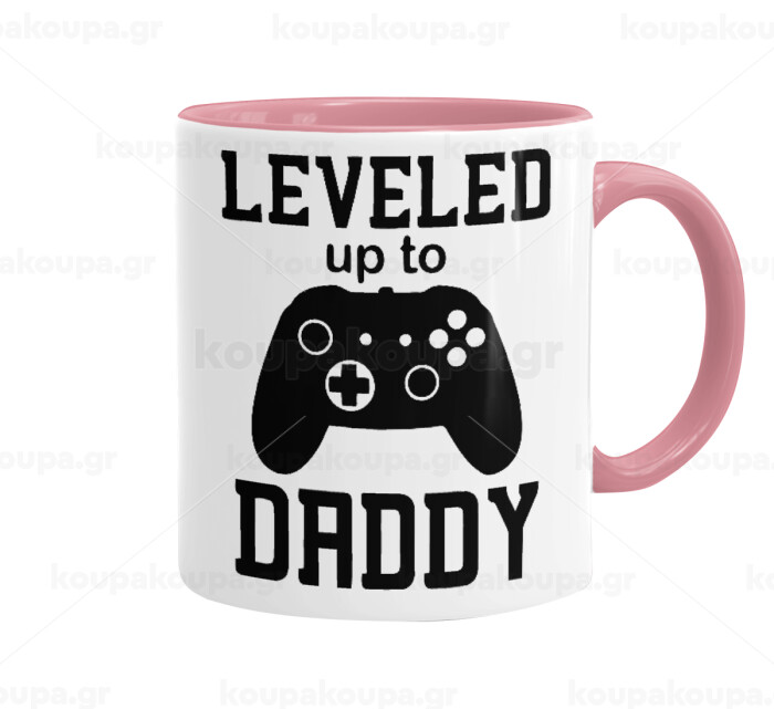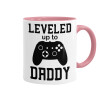 Leveled to Daddy, Κούπα χρωματιστή ροζ, κεραμική, 330ml