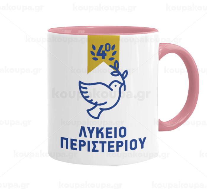 Έμβλημα Σχολικό μπλε/χρυσό περιστέρι, Κούπα χρωματιστή ροζ, κεραμική, 330ml