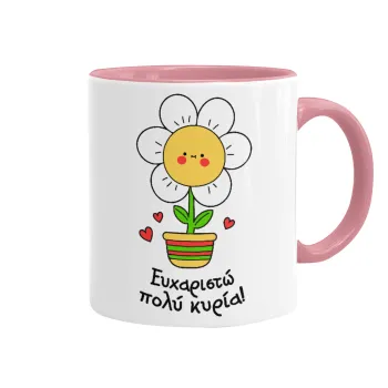 Ευχαριστώ πολύ κυρία!!!, Κούπα χρωματιστή ροζ, κεραμική, 330ml