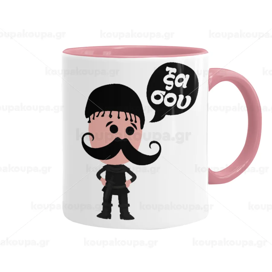 Κρητικός "Ξα σου", Κούπα χρωματιστή ροζ, κεραμική, 330ml