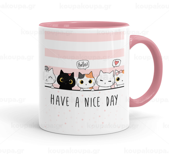 Have a nice day cats, Κούπα χρωματιστή ροζ, κεραμική, 330ml