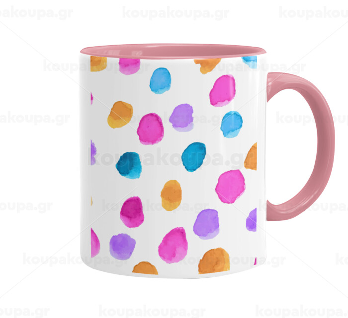 Watercolor dots, Κούπα χρωματιστή ροζ, κεραμική, 330ml