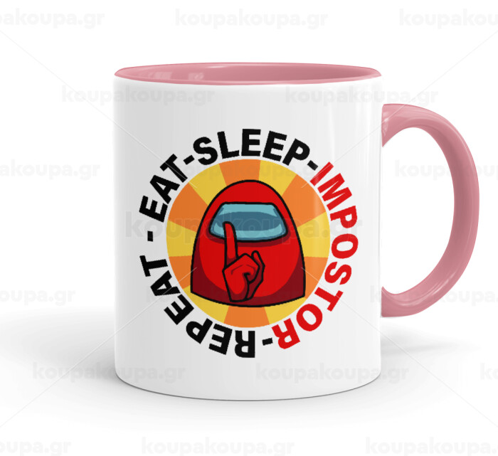 Among US Eat Sleep Repeat Impostor, Κούπα χρωματιστή ροζ, κεραμική, 330ml