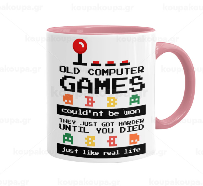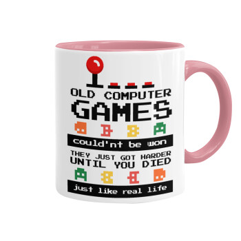OLD computer games couldn't be won just like real life!, Κούπα χρωματιστή ροζ, κεραμική, 330ml