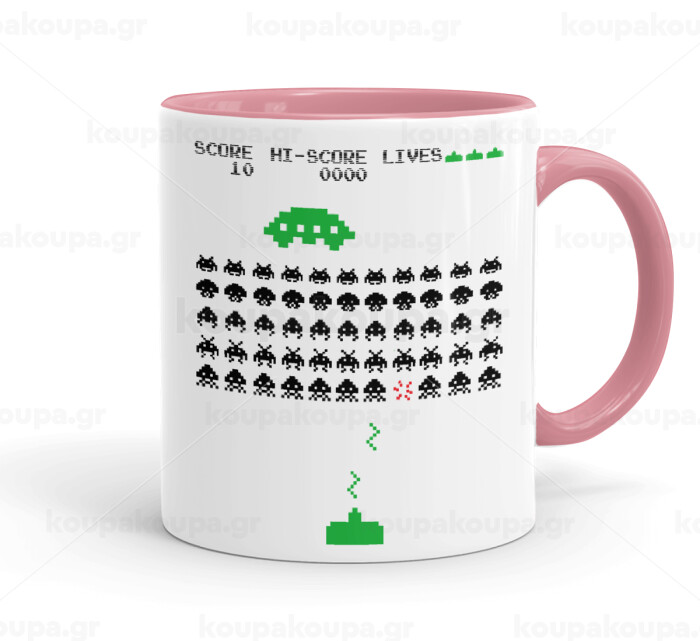 Space invaders, Κούπα χρωματιστή ροζ, κεραμική, 330ml