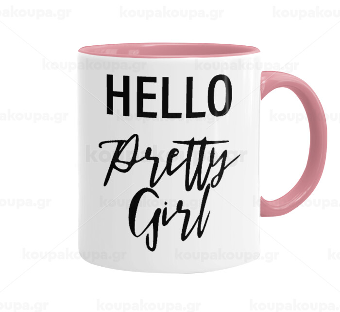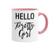 Hello pretty girl, Κούπα χρωματιστή ροζ, κεραμική, 330ml