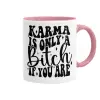Karma is Only A Bitch if You Are, Κούπα χρωματιστή ροζ, κεραμική, 330ml